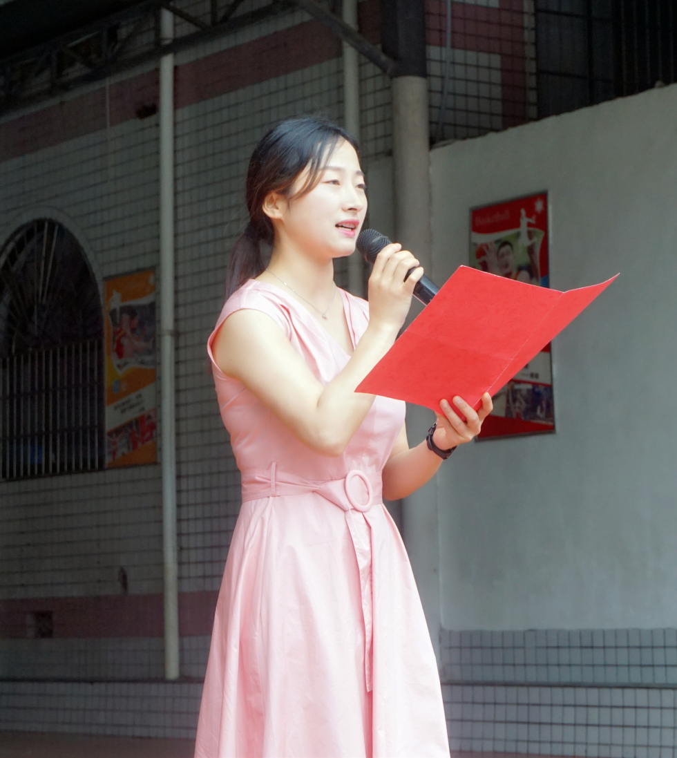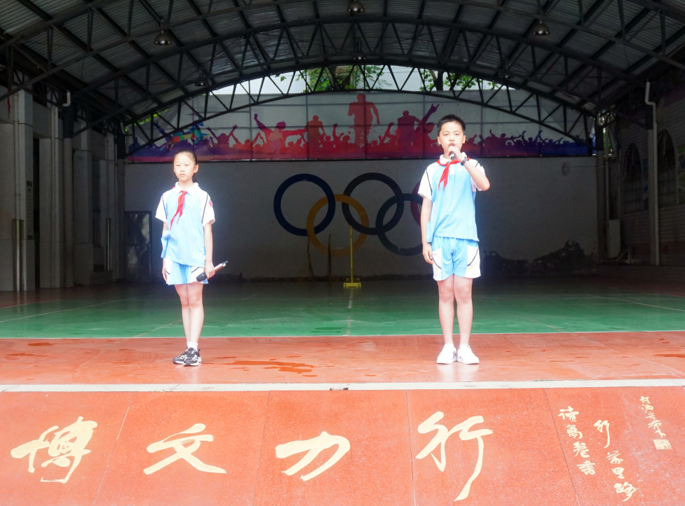 黄园老师宣布第十一周一日常规、卫生常规优秀班级。宣读我校学生参加长沙市小学生男子篮球比赛喜讯。