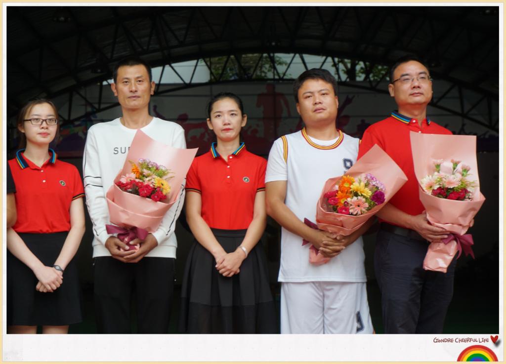 过完了十一小长假,欢迎大家回到美丽的校园。回想放假前的九月,我校教工男子篮球队在湖南师范大学2017年教职工篮球比赛中,连胜七场,夺得冠军!堪称师大附小建校64年来一个了不起的奇迹!这是多么骄人的成绩啊!下面,让我们用雷鸣般的掌声,有请我们的男神运动员们闪亮登场!让我们记住他们的名字!陈显、刘沛宇、蔡龙、曾金明、黄展、管济、彭志凯、夏拥军、张勇、黄志聪、刘园。请我们青春靓丽的美女教师代表我校1700名学生、114名老师给运动员献花!请所有少先队员给敬爱的老师们敬礼!