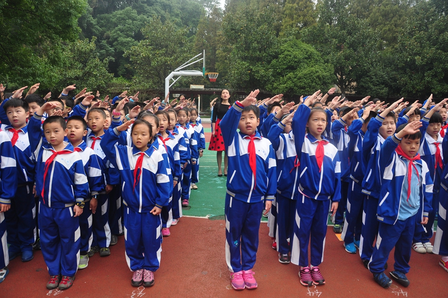 今天,我国旗下讲话的题目是:雏鹰争章,我能行!