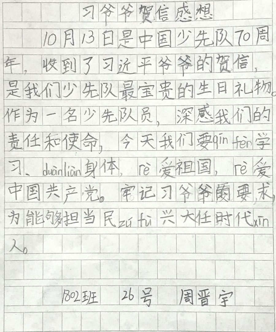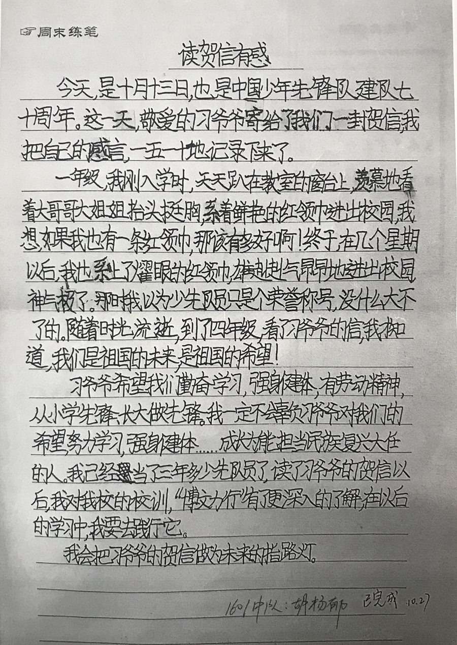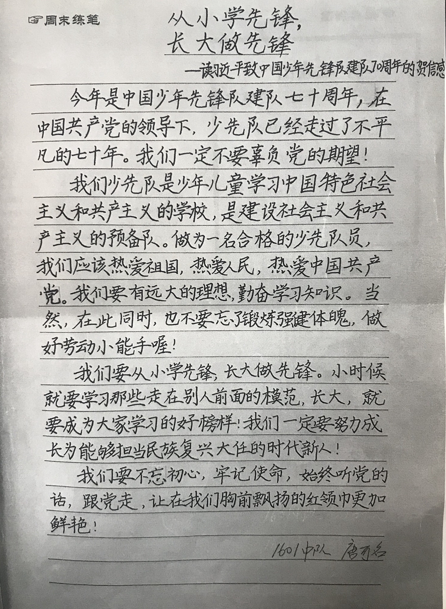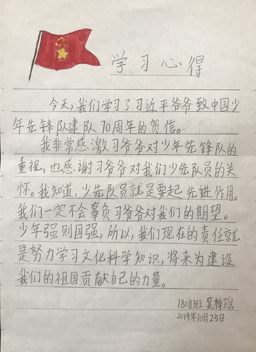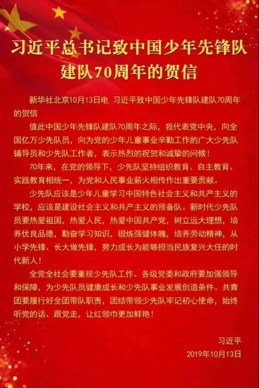 2019年 10月31日,在中国少年先锋队建队70周年之际,习近平总书记代表党中央亲切致信,在我校少先队员、少先队辅导员和少先队工作者中引起强烈反响。