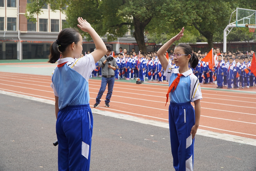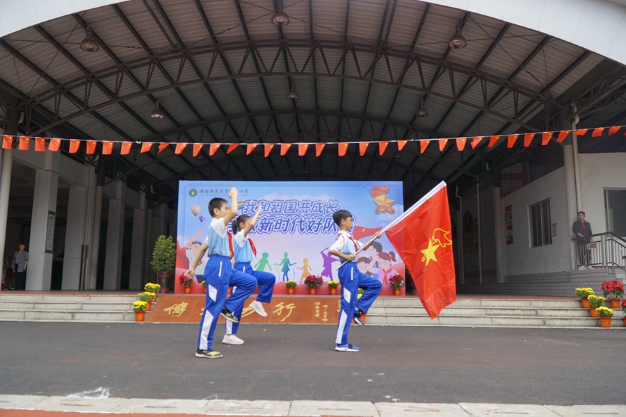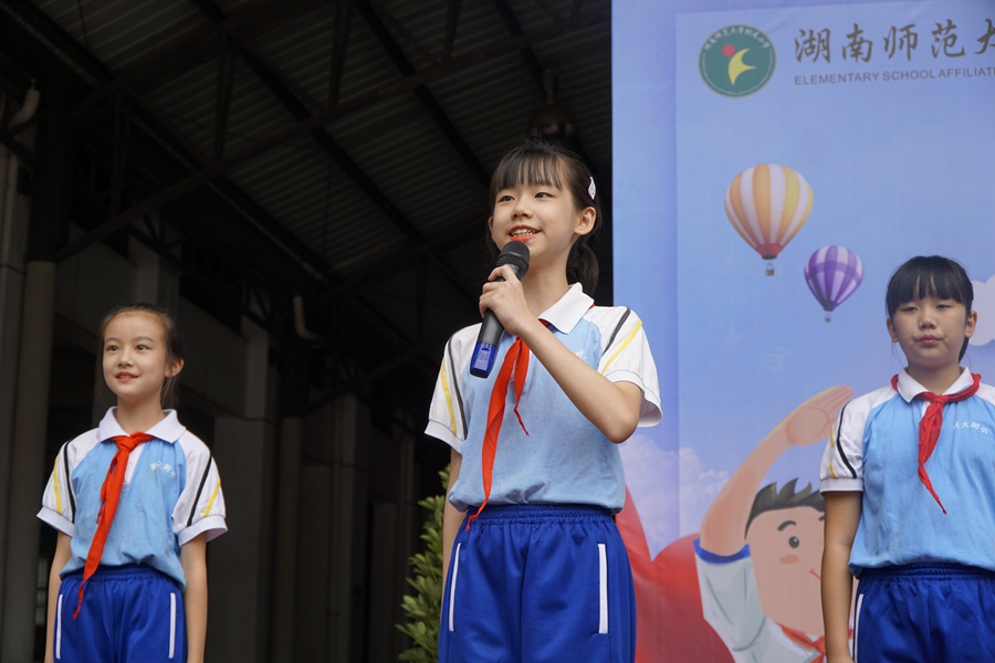我校师生用丰富多彩的活动隆重庆祝少先队员建队纪念日,充分展示了新时代少年儿童朝气蓬勃的精神风采。此次活动旨在培养担当民族复兴大任时代新人的根本任务,启发少先队员围绕时代新人的本领要求,激发队员作为“强国一代”的使命感、光荣感,引导少年儿童努力成长为担当民族复兴大任的时代新人。此活动在湖南卫视当天的新闻联播中进行了报道,社会反响强烈。