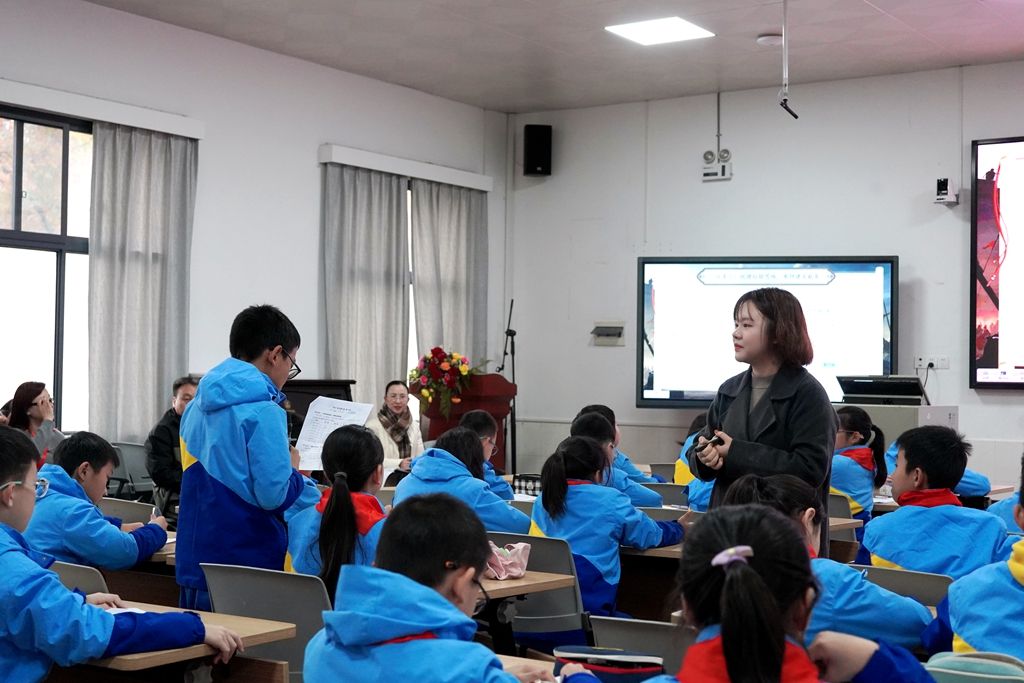 校园观摩结束后,活动进入课堂观摩环节。我校语文教研组段长黄钰老师带领五年级2102班孩子走进《田忌赛马》,呈现了一堂精彩的展示课。课堂上,黄老师巧妙融入多媒体教学手段,引导学生深入理解文本内涵,激发学生思维的火花,充分展现了我校在学科教学与信息技术融合的扎实成果。