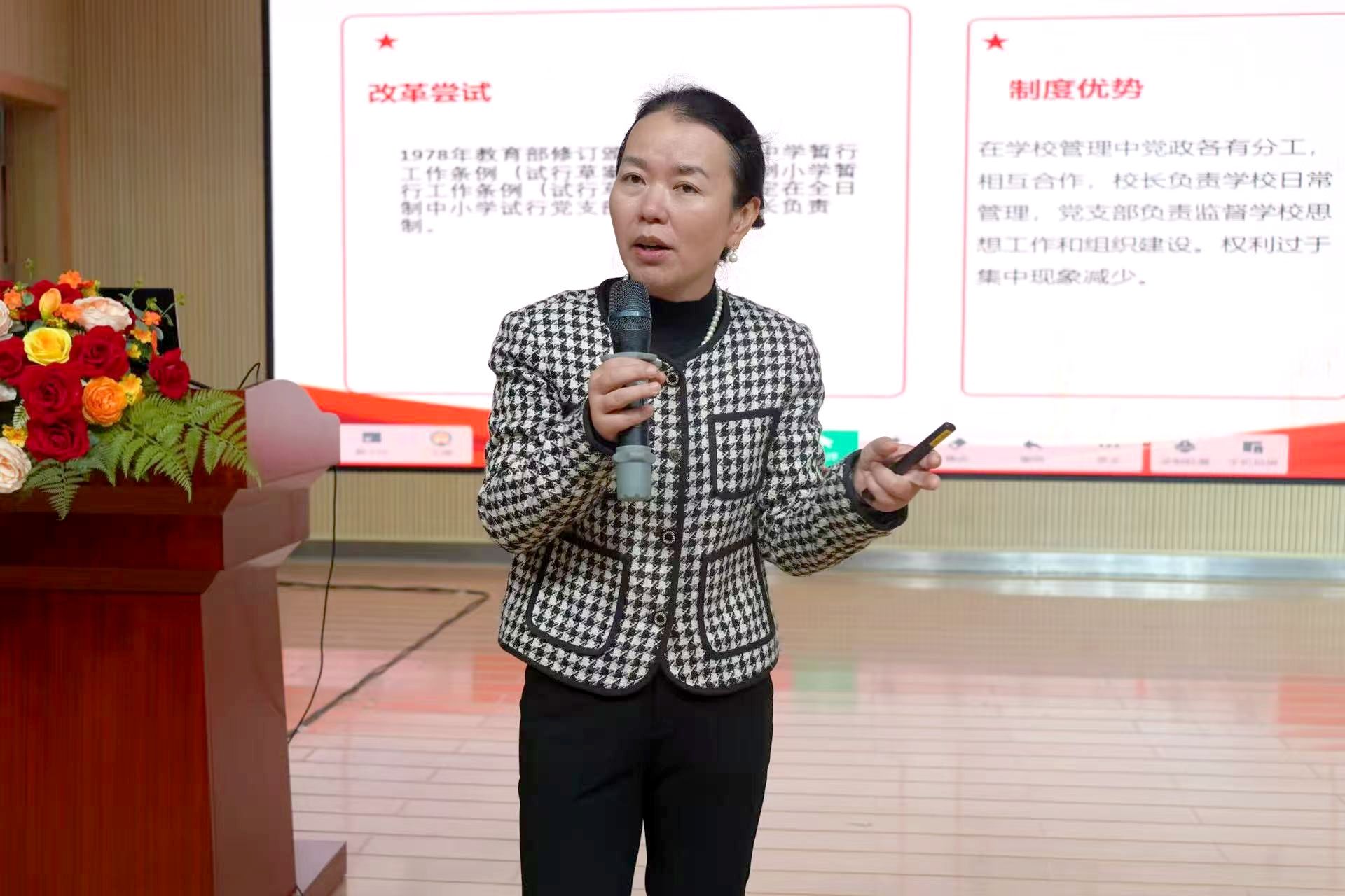 随后的交流会上,学校党总支书记李晓玲对学员们的到来表示热烈欢迎,并作了题为《党组织领导的校长负责制的历史沿革、挑战和附小实践》的专题报告。报告中,李书记系统梳理了附小党组织领导的校长负责制的历史发展脉络,深刻剖析了面临的现实挑战,并重点分享了师大附小的探索实践与阶段性成效。她表示附小面向未来,将持续深化“一体两翼四共五维”改革,以数字治理与AI课程为双引擎,推动育人模式迭代,打造具有全国影响力的“智慧五育融合”示范校。