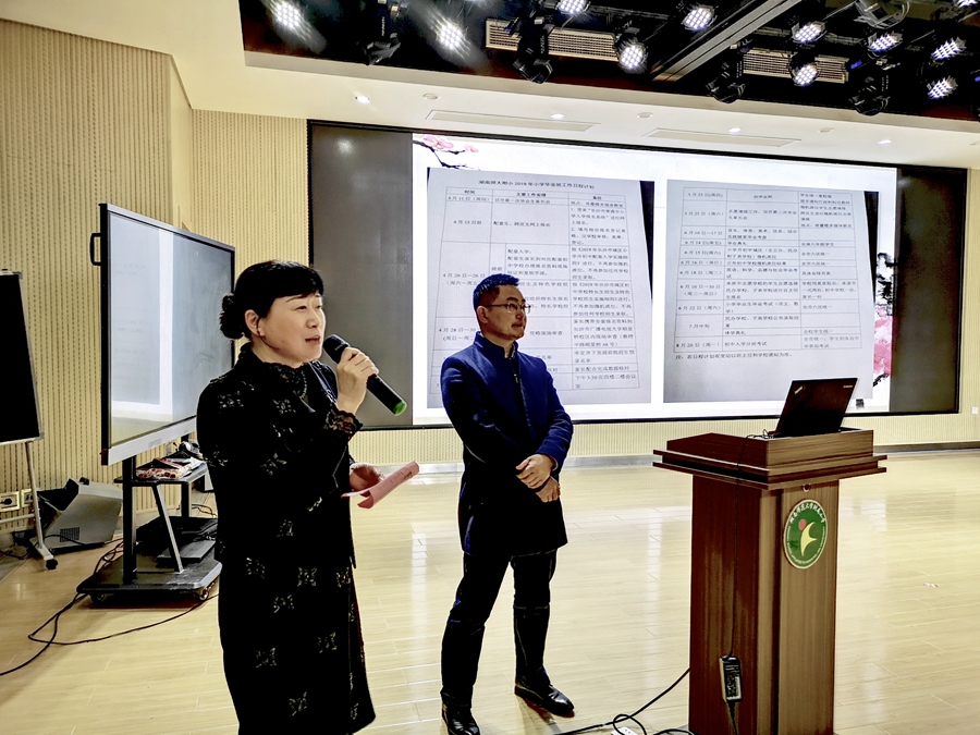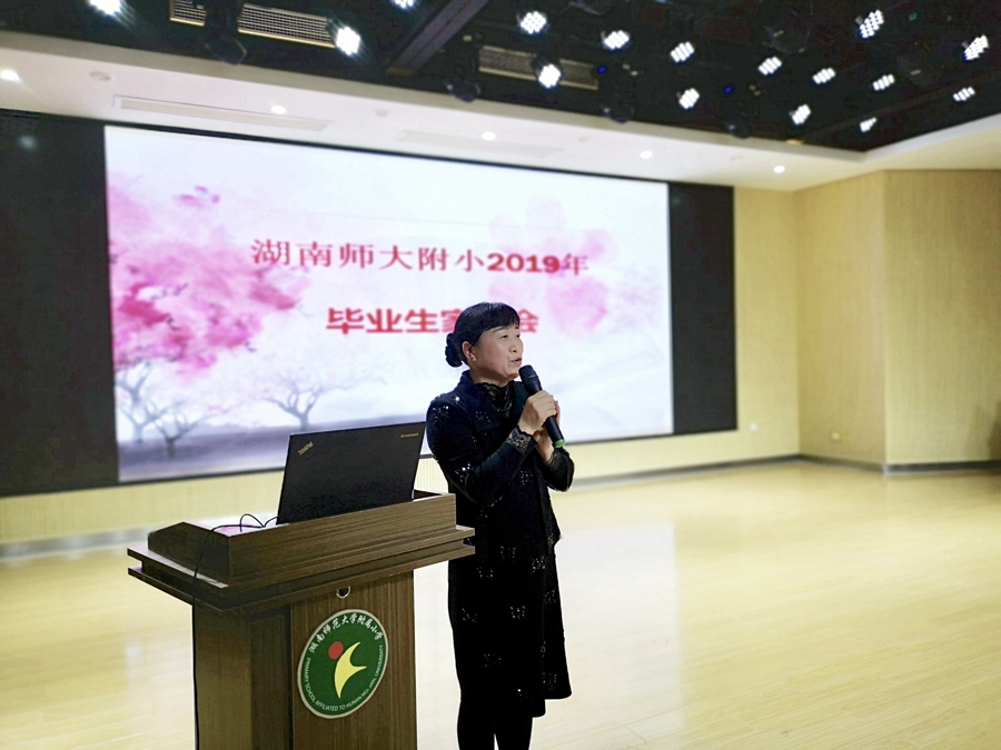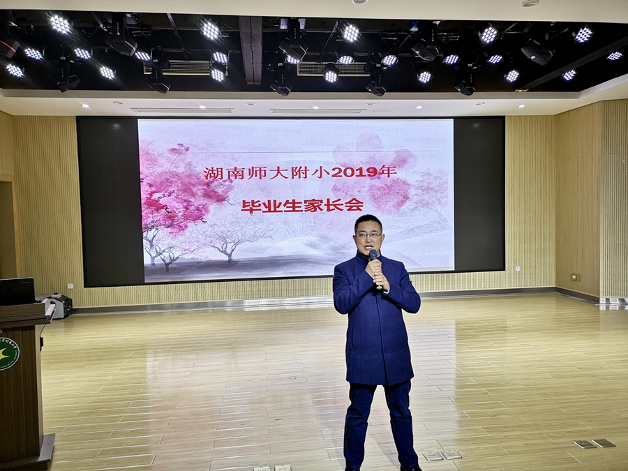 2019年4月11日晚上7:00,湖南师大附小在倚麓楼多功能厅召开六年级毕业班家长会,助力孩子小升初。会议由师大附小校长易冰主持。