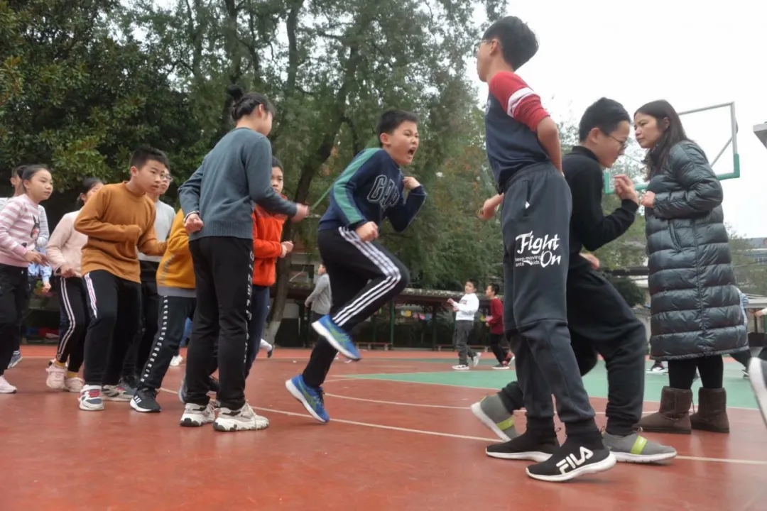 长绳飞舞起来啦!孩子们在看准时机后,默契地配合着,脚如风火轮,疾风猛踏;绳似疾闪电,来去无踪。一跳一跃间,俨然“光速少年”的风采。集体绳中,心理建设和技术训练必须并重,相辅相成,相信这是孩子们格外珍贵的体验和收获。