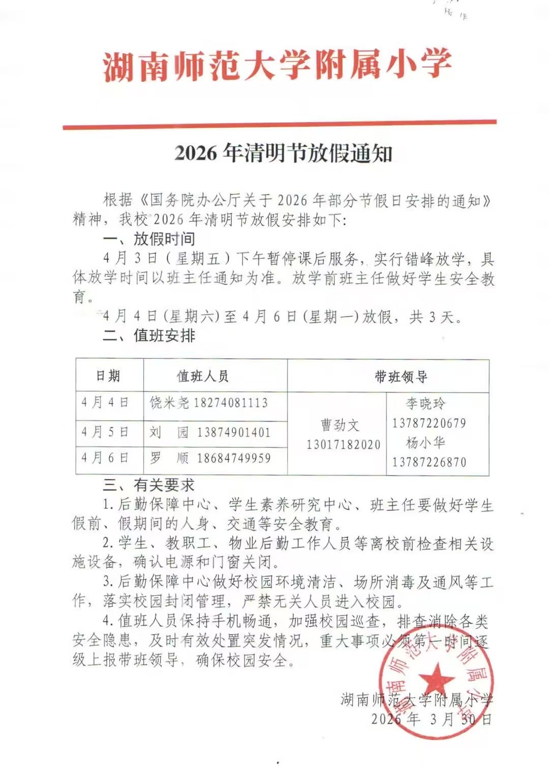 2026年清明节放假通知