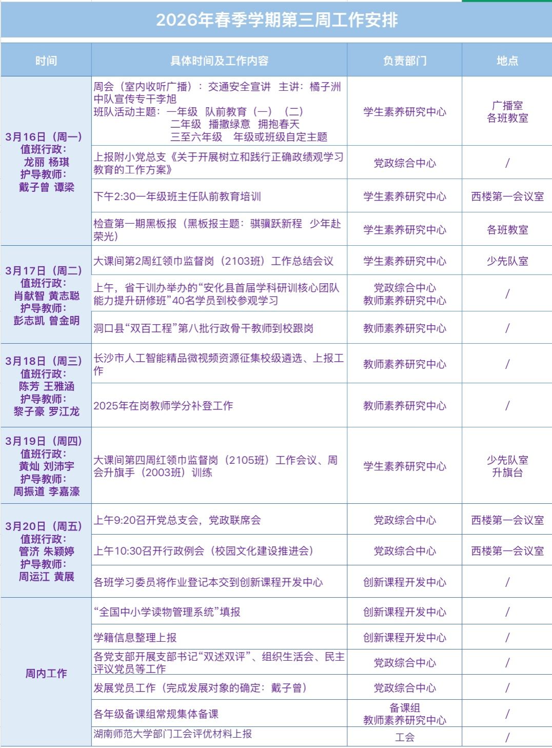 2026年春季学期第3周工作安排