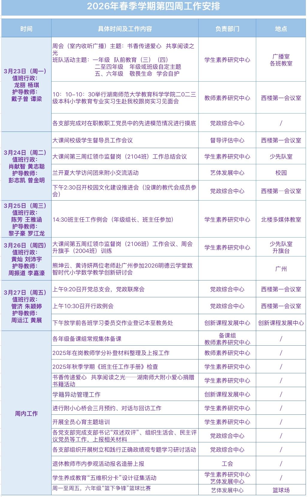 2026年春季学期第4周工作安排